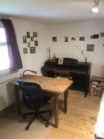 Ein gemeinsames Badezimmer wird mit 4 weiteren Menschen geteilt. Das Zimmer ist möbliert (Bett, Schrank, Komode, kleiner Tisch, Klavier). Sollte die zwischenmietende Person eingene Möbel mitbringen wollen, können wir darüber sprechen.