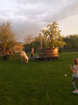 Direkt hinter unserem Garten befindet sich ein kleiner Pferdeoffenstall (der nicht zur Hausgemeinschaft gehört). Möchtet ihr jedoch Pferde kuscheln, könnt ihr euch an Anika aus dem Dachgeschoss wenden.