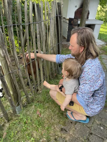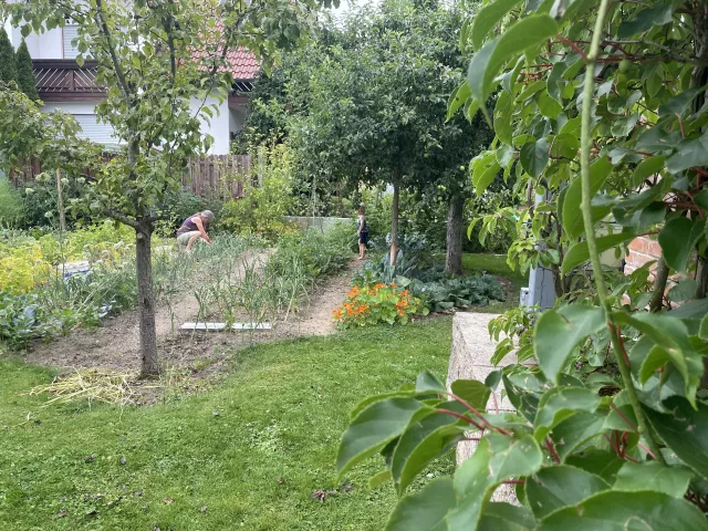 Der Wohnraum, in dem es großzügige Gemeinschaftsflächen (mind. Küche, Wohn-/Esszimmer) und ausreichend private Schlafräume für alle geben soll, soll von einem großen Garten umgeben sein, in dem wir nach Lust und Laune selbst anbauen können; wichtig sind uns auch alte Bäume, auf denen unsere Kinder klettern können und die im besten Fall noch Obst tragen. Wenn Platz für Kleintierhaltung (z.B. Ziegen, Hühner, Laufenten, Gänse, etc.) ist, wäre das umso schöner.