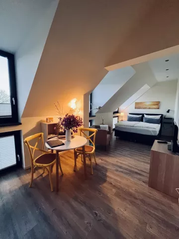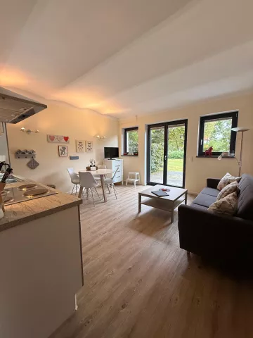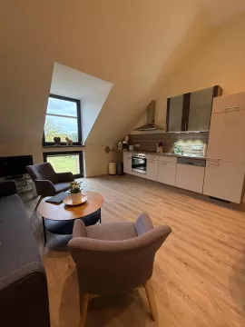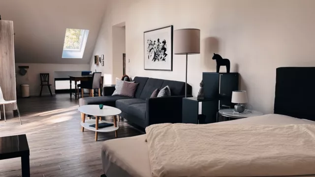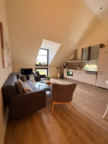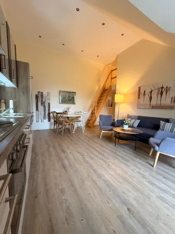 Das Objekt befindet sich in einem ehemaligen Stallgebäude (ca. 476m2 ) und wurde liebevoll und aufwändig renoviert. Seit 2015 entstanden fünf einzelne Wohnungen unterschiedlicher Größe (ca. 66m2, 63m2, 42m2, 26m2 und 55m2) auf zwei Etagen die bisher möbliert als Ferienwohnungen vermietet wurden. Vier Wohnungen befinden sich im 1. OG, eine Wohnung wurde barrierefrei erbaut und liegt im Erdgeschoss.