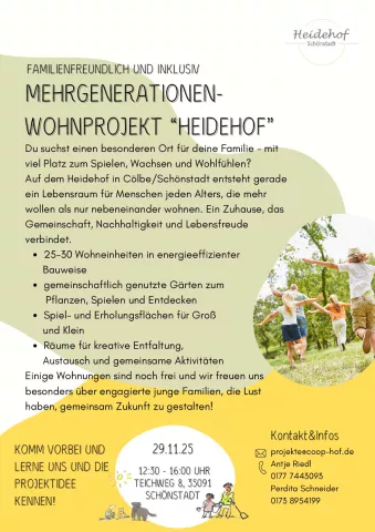 Das Wohnprojekt „Heidehof“ hat noch freie Wohnungen für Familien, Alleinerziehende, Alleinstehende - Menschen die Lust auf gemeinschaftliches Leben und Teilen haben!