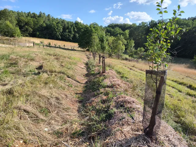 Eine zentrale Rolle soll dabei die gemeinsame Nutzung, Pflege und Verwaltung der ca 28 ha Wald und Wiese zukommen. Ziel soll es sein mit der Fülle und Vielfalt dieser kleinen Landschaft und ihren Bewohnern so zu interagieren, dass Fülle und Vielfalt unterhalten und gefördert... Eine zentrale Rolle soll dabei die gemeinsame Nutzung, Pflege und Verwaltung der ca 28 ha Wald und Wiese zukommen. Ziel soll es sein mit der Fülle und Vielfalt dieser kleinen Landschaft und ihren Bewohnern so zu interagieren, dass Fülle und Vielfalt unterhalten und gefördert werden, und uns erlaubt verschieden ökologische und sozial Ziele umzusetzen, die wir zusammen genauer definieren. Permakulturprinzipien sollen dabei einen Leitfaden bilden. Es gibt auf dem Hof eine grosse alte Scheune (280 m2), die fast fertig umgebaut ist und mindestens für 2 Familien einen grosszügigen und ziemlich schicken Platz bieten wird. Bezugsbereit mitte 2026. Das Haus ist aus fast 100% biologischen Materialien gebaut. Es gibt auch ein kleines ca. 20 m2 grosses Häuschen mit einer Küchennische mit Cheminee, einer Duschnische mit italienischer Dusche und Lavabo, und einer Schlafnische. Neben dem Häuschen hat es eine Jurte auf einer Plattform und ein schönes-isoliertes Trockenklohäschen. Da haben wir in den letzten 4 Jahren drin gewohnt. Das alte Wohnhaus ist zur Hälfte zu renovieren. Die Dachsanierung ist für dieses Frühjahr geplant. Die andere Hälfte des ursprünglichen Wohnhauses wurde abgebaut, um für einen Neubau Platz zu machen. Es gibt auch noch ein kleine Steinruine, auf der auch ein 30m2 grossen Häuschens errichtet werden könnte. Wir sind im Moment vor allem auf der suche nach einer -2bis 5-köpfigen Familie mit Kind(ern) im alter zwischen 5 und 12 Jahren, welche sich vorstellen könnte erstmals mit uns die «Scheune» zu bewohnen und am weiteren Aufbau mitzuwirken. Es hat natürlich auch Platz für 2 Personen, eine Ein-Eltern-Familie oder ein Paar, dass des kleinen Häuschens mit oder ohne Jurte bewohnen wollen, so wie wir das die letzten 5 Jahre gemacht haben. Oder es hat Platz für Leute, die einem Wagen wohnen wollen, längerfristig oder kurzfristig während weiter renoviert oder gebaut wird. Der Nachbarhof steht in Zukunft auch noch zum Verkauf. Mehr erfahren