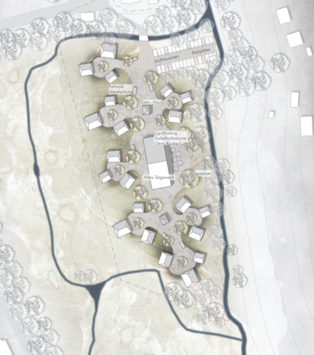 Geplant ist ein kleines, nachhaltiges Dorf mit rund 20 Wohneinheiten in Holzbauweise.