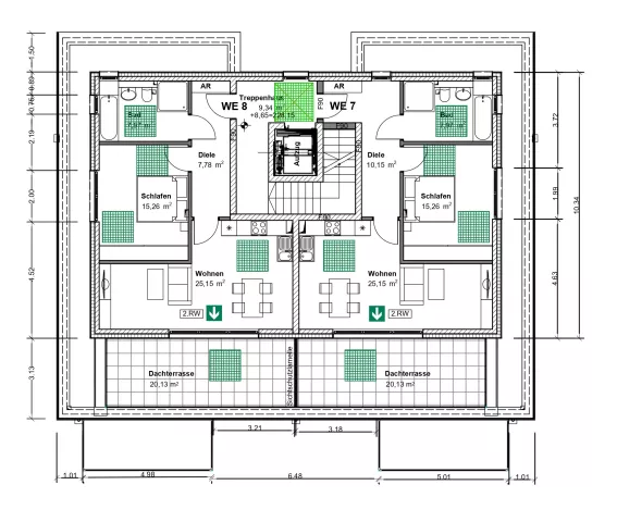 a) 2-Raum-Penthouse mit ca. 69 qm Wfl.