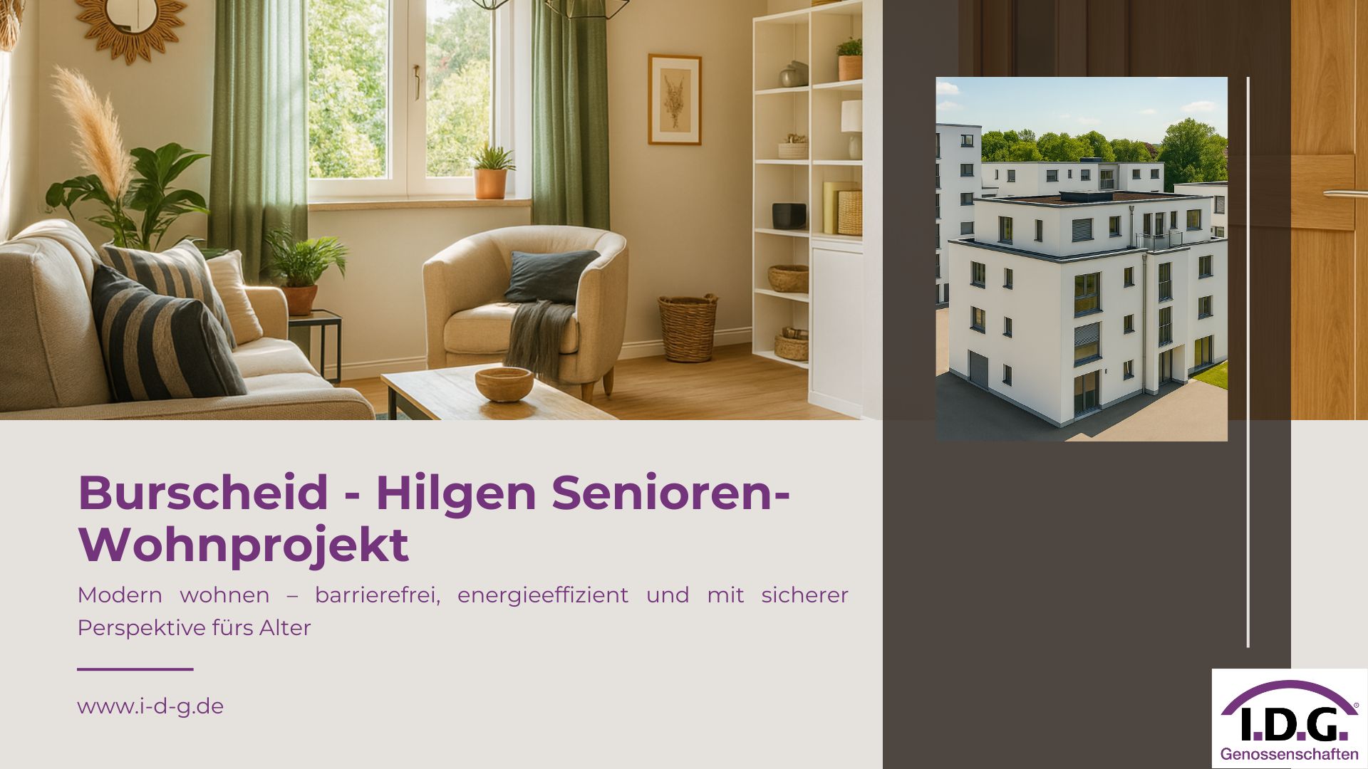 Selbstbestimmt handlen und frühzeitig einen Platz im barrierefreien Genossenschaftsprojekt mit Betreuungsmöglichkeit nach individuellem Bedarf sichern!