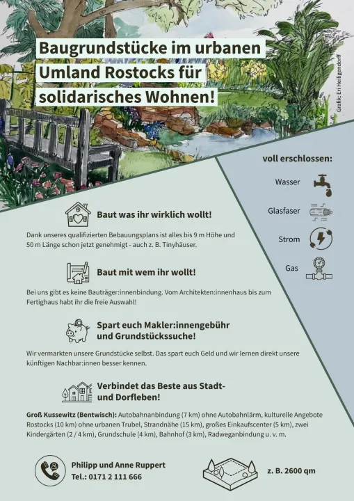 Wir sind Eigentümer eines Grundstücks (3550 qm), das wir verkaufen wollen. Wir wollen es dabei dem Kapitalmarkt entziehen. Die wohngenossenschaftliche Nutzung erscheint uns dafür perfekt: Menschen mit normalem Einkommen können staatlich gefördert Mitglied werden. Sie haben ein lebenslanges Wohnrecht. Ihre Wohngeldzahlungen kommen ihnen selbst zugute statt einem Fremdvermieter. Das Mieten wird im Laufe der Jahre immer günstiger. Die Genossenschaft entscheidet, was mit dem Grundstück und der Bebauung geschieht - nicht eine einzelne Person. Die Genossenschaft ist so klein, dass die einzelnen Mitglieder direkt erheblichen Einfluss auf die Entscheidungen nehmen. Und nicht zuletzt: wir bekommen nette Nachbarn :-)