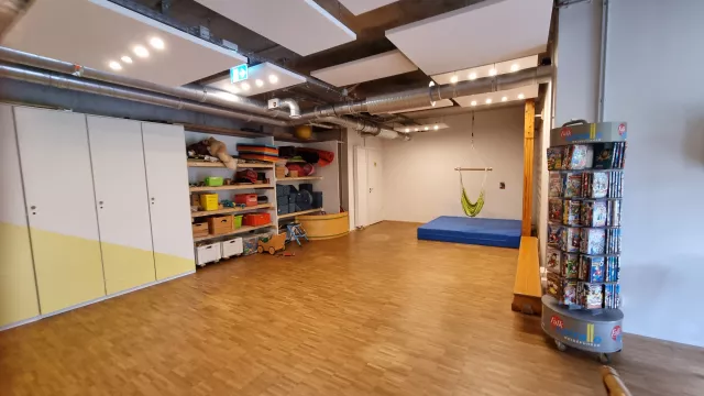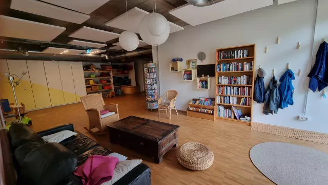 wohnen bereits ca. 100 Personen dort, davon über 20 Kinder. Die Menschen im PrymPark teilen verschiedene Gemeinschaftsbereiche und -räume miteinander, insbesondere eine große Gemeinschaftsküche mit Essraum, Bewegungsraum, Waschcafé, Kreativraum, Werkstatt und Gästewohnung. Der Gemeinschaftsraum in unserem Haus wird als Ruhe-Oase dienen.