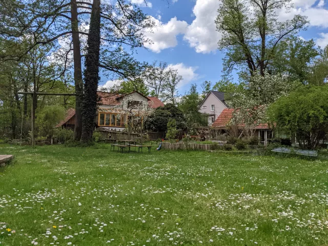 Wir sind eine Gruppe von sechs Erwachsenen und vier Kindern, die gemeinschaftlich in Schöneiche zusammenleben möchten. Das Haus wurde von der Wohnungsbaugenossenschaft Bremer Höhe eG gekauft und wird an die Bewohner*innen vermietet. Derzeit befindet es sich noch im Umbau, der Einzug ist voraussichtlich ab Frühjahr 2026 geplant. Die Gruppe findet sich gerade erst durch regelmäßigen Austausch, gemeinsame Organisation, Feste und praktische Einsätze im Garten immer mehr zusammen.