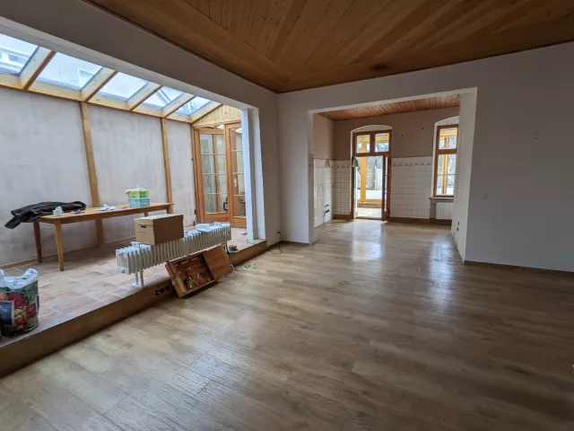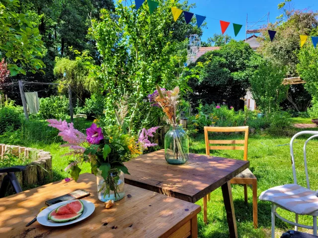 Wichtig ist uns dabei ein undogmatischer Umgang miteinander, der die individuellen Bedürfnisse der Bewohner*innen respektiert und Raum für Toleranz, Rücksichtnahme und Kompromissbereitschaft schafft. Dabei wünschen wir uns eine offene, transparente Kommunikation und die Bereitschaft, sich darin weiterzuentwickeln, um mit Veränderungen und Konflikten einen guten Umgang zu finden. Wir wollen Teile unserer Freizeit bewusst gemeinsam gestalten: Wir möchten aktiv miteinander leben, statt einfach nur zusammenzuwohnen. Wir haben einen gemeinsamen Wohn-Ess-Bereich, der das Herz des Hauses darstellt. Hier möchten wir unser Gemeinschaftsleben begehen und organisieren. Zusätzlich gibt es noch zwei weitere WG-Küchen. Der Rückzug in die eigenen Räumlichkeiten und unterschiedliche Alltagsrhythmen und -bedürfnisse werden natürlich respektiert und als wichtiger Bestandteil des Gemeinschaftslebens wahrgenommen. Wichtig ist uns eine Offenheit für Gäste: Neben dem Empfang von Familie und Freund*innen möchten wir in regelmäßigen Abständen öffentlich zugängliche Events und Veranstaltungen im Garten anbieten, zu denen Menschen aus der Umgebung eingeladen sind.