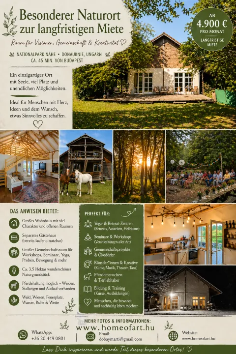Langfristig offen für Projekte, Gemeinschaften oder Retreat-Konzepte.
