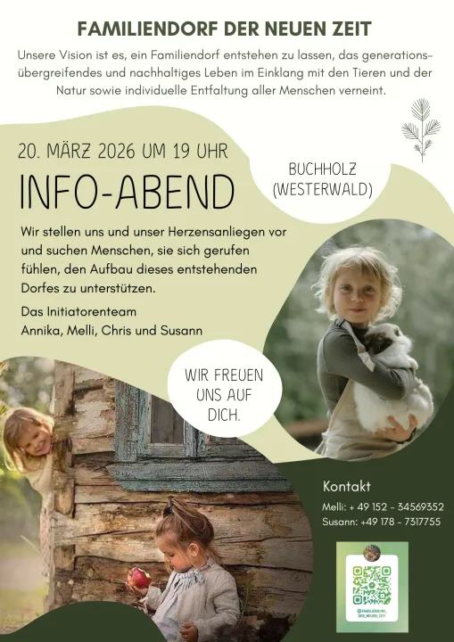 Wir sind Annika, Melli, Chris und Susann und unser Herzensanliegen ist es, ein Familiendorf entstehen zu lassen, das generationsübergreifend und nachhaltig im Einklang mit den Tieren und der Natur lebt – ein Ort, in dem Menschen in Verbundenheit leben und in Gemeinschaft wachsen können. Dabei können alle Dorfbewohner ihre einzigartigen Potenziale und Talente frei entfalten und dem Weg der Freude folgen.