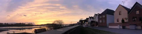das 779m² große Grundstück liegt unmittelbar am Rhein, hinter einer Hochwasserschutzanlage und einer Uferpromenade für Fußgänger.