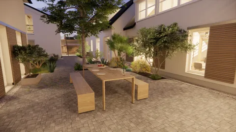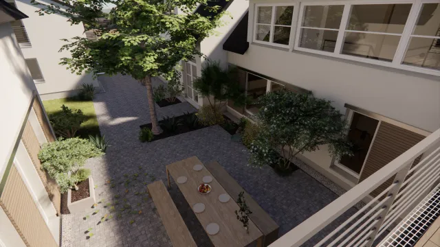 Dieser attraktive Wohnhof umfasst 10 Wohneinheiten mit Größen zwischen ca. 50 und 85 m². Jede Wohnung bietet ein hohes Maß an Privatsphäre und fügt sich zugleich in ein harmonisches Gesamtensemble ein.