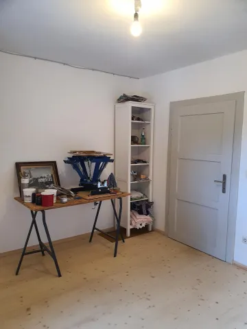 Der gemütliche Garten und die Ladenfläche im Erdgeschoss warten darauf, gestaltet zu werden. Unsere Vision ist nicht nur günstigen Wohnraum entstehen zu lassen, sondern auch einen offenen Raum für gemeinnützige, selbstorganisierte oder kulturelle Projekte zu schaffen, der die gesamte Gemeinde und Umgebung bereichert. Offene Werkstätten, Proberäume, Abendveranstaltungen – wir haben viele Ideen. Der ehemalige Friseursalon im Erdgeschoss bietet in Zukunft ganz viel Platz für politische Bildung, Kunst und kulturellen Austausch. Das wollen wir nutzen!